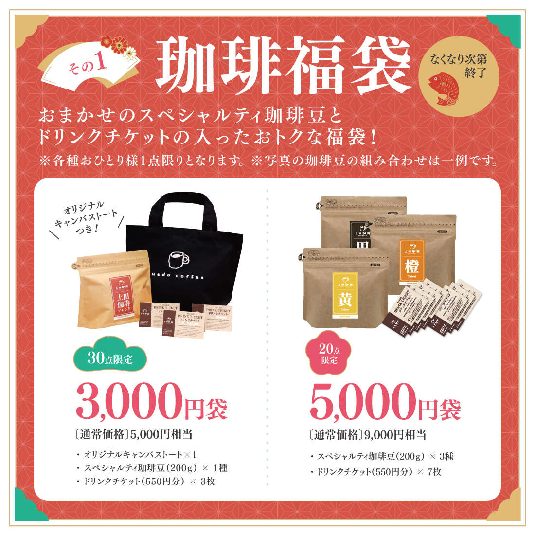 ①スペシャルティ珈琲 福袋販売! 数量限定ですのでお早めにどうぞ。
